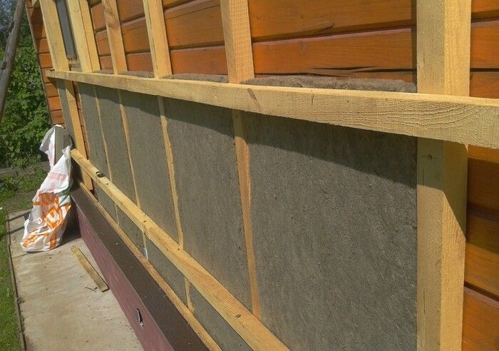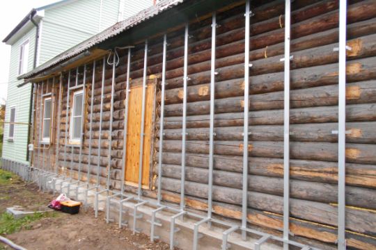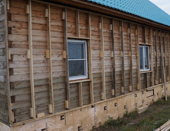 Деревянные дома (бревно или брус) утепляют исключительно минеральной ватой по технологии навесного фасада.